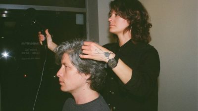 Men’s long cut with hair covering the ears or longer.